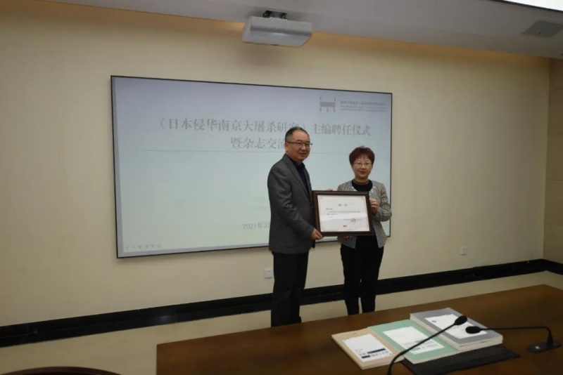 在主編聘任儀式現(xiàn)場,紀(jì)念館館長張建軍介紹了《日本侵華南京大屠殺研究》雜志的發(fā)展情況?!度毡厩秩A南京大屠殺研究》于2018年初正式創(chuàng)刊,開辟特約論文、筆談、南京大屠殺研究、“慰安婦”問題研究、日本侵華研究、抗日戰(zhàn)爭研究、和平學(xué)研究、史實(shí)考證、圖書評論、會(huì)議綜述、外文譯檔等11個(gè)欄目。2019年3月,期刊被收錄到《CSSCI中文社會(huì)科學(xué)索引(2019-2020年)來源期刊擴(kuò)展版》。