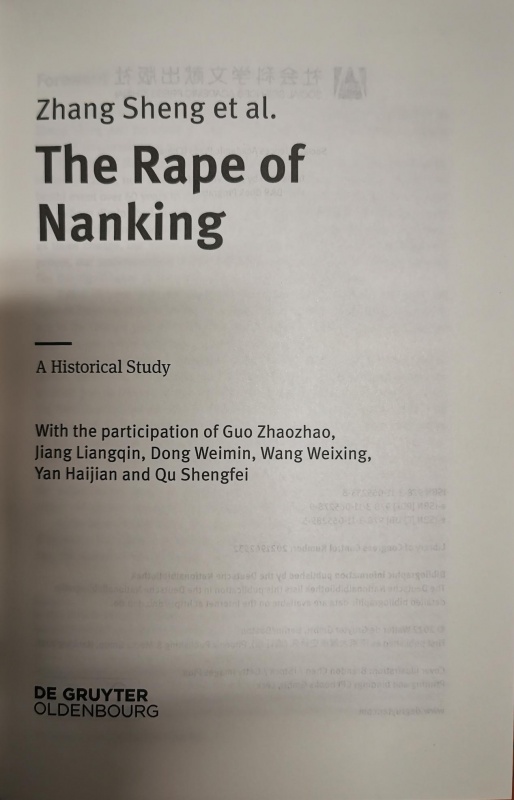 重磅書訊| Zhang Sheng et al. The Rape of Nanking, A Historical Study